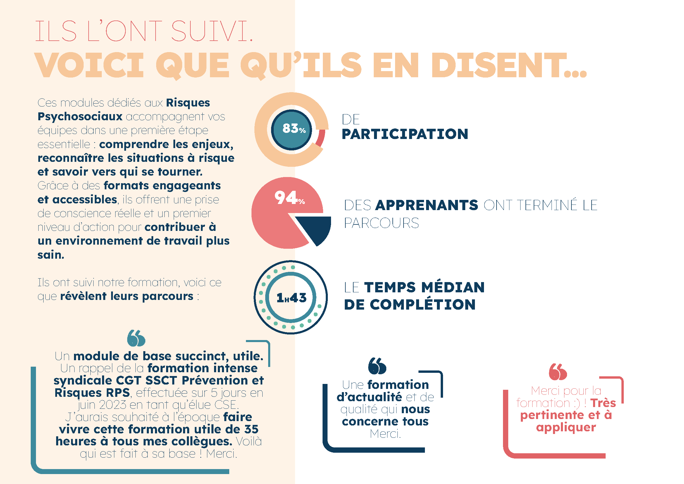 Ces modules dédiés aux Risques Psychosociaux sont imaginés par nos consultants RH, nos managers et notre référent RPS, puis co-construits et validés par nos ingénieurs pédagogiques de formation.